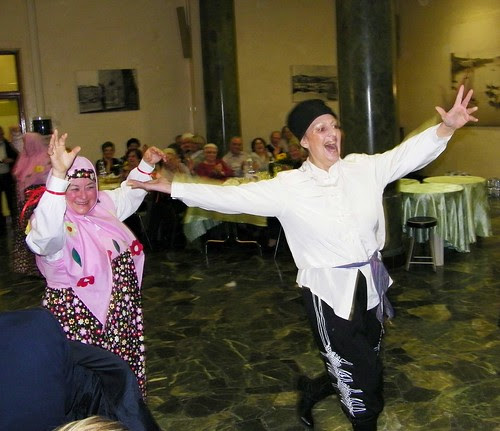 Tra il primo e il secondo abbiamo assistito all'irruzione di un cosacco (che poi era una cosacca) che ha coinvolto nella danza due stupite matrioske-cameriere che stavano portando via i piatti.